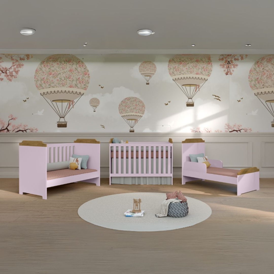 CUNA SOFA MINI CAMA 3 ETAPAS LARA ROSADO/MADERA